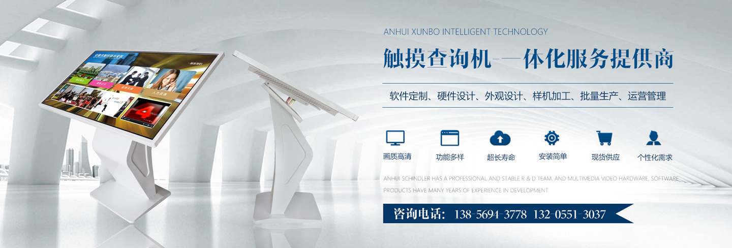 迅博智能 位于中國科教城---合肥市,和經(jīng)濟(jì)開發(fā)區(qū)與高新區(qū)毗鄰,地址合肥市肥西縣湯口路與皋城路交口人民萬福產(chǎn)業(yè)園一期12棟東側(cè),是一家IT領(lǐng)域的高新技術(shù)企業(yè),全心全意服務(wù)于信息化建設(shè),做專業(yè)的信息化提供商,全力打造信息時(shí)代新模式。 迅博智能 主要從事觸摸屏、觸摸顯示器、OLED柔性觸摸屏、觸摸查詢一體機(jī)系列產(chǎn)品及觸摸顯示互動體驗(yàn)軟硬件產(chǎn)品;智能排隊(duì)叫號、網(wǎng)上預(yù)約排隊(duì)叫號、安康碼皖事通取號系統(tǒng);曲面屏、OLED 屏幕、柔性屏、LCD液晶大屏拼接系統(tǒng);落地式、壁掛式單機(jī)版網(wǎng)絡(luò)版室內(nèi)外廣告機(jī)及數(shù)字標(biāo)牌廣告信息發(fā)布系統(tǒng);室內(nèi)外LED電子格柵透明屏、單雙色、全彩電子大屏;各類辦事營業(yè)廳:公積金...
